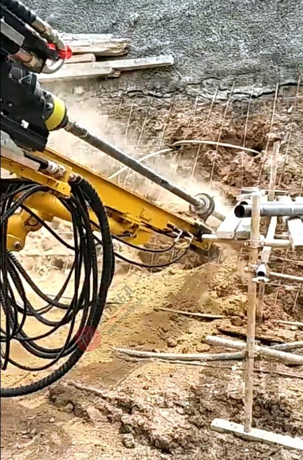 TDY580露天高风压潜孔钻机,是张家口市宣化腾达钻孔机械有限公司自行研制开发的高效率穿孔机械。适用于水电、公路工程土石方开挖施工中爆破孔与非爆破孔的穿凿作业;也是各类矿山开采中穿凿爆破孔的理想设备。该机使用风压在1.05-2.46Mpa之间,可在低、中、高风压条件下完成钻孔根管钻进等工作,用户可根据施工条件和需要任意选择。由于只有钻具消耗压缩空气,因而钻机钻进速度快而消耗气量较小,节能1/3,大幅度降低了钻孔成本,因而深受各施工单位和矿山的欢迎。